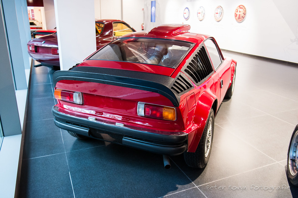 In early 1966, after the Type 33 project created by the engineer Orazio Satta Puliga had been passed on to the Autodelta racing area, Giuseppe Busso proposed a design for another Alfa Romeo sports car with a rear engine, but this time using the GTA four-cylinder engine: the Scarabeo. The engine was mounted transversely in the rear, in a block with the clutch and gearbox, while the tubular frame adopted the ambitious solution - used on the 33 - of the large tubular spars on either side of the interior, containing the fuel tanks. The bodywork was entrusted to the OSI body shop in Borgaro Torinese: a first example, with a right-hand drive, was presented at the Paris Motor Show in October 1966. A second simplified design prototype was subsequently built - the car currently on display in Compiègne - and a Barchetta was worked on, but not completed.