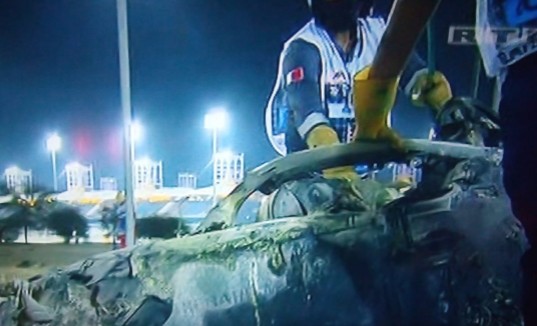 Ja, das mit dem verlorenen Schuh am linken Fuß konnte man sehen wie er über die Leitplanke geklettert kam. Was den Halo betrifft meinst Du bestimmt die Aufnahme hier. Das Ding ist aber in Anbetracht des brutalen Crashs ziemlich intakt geblieben: -