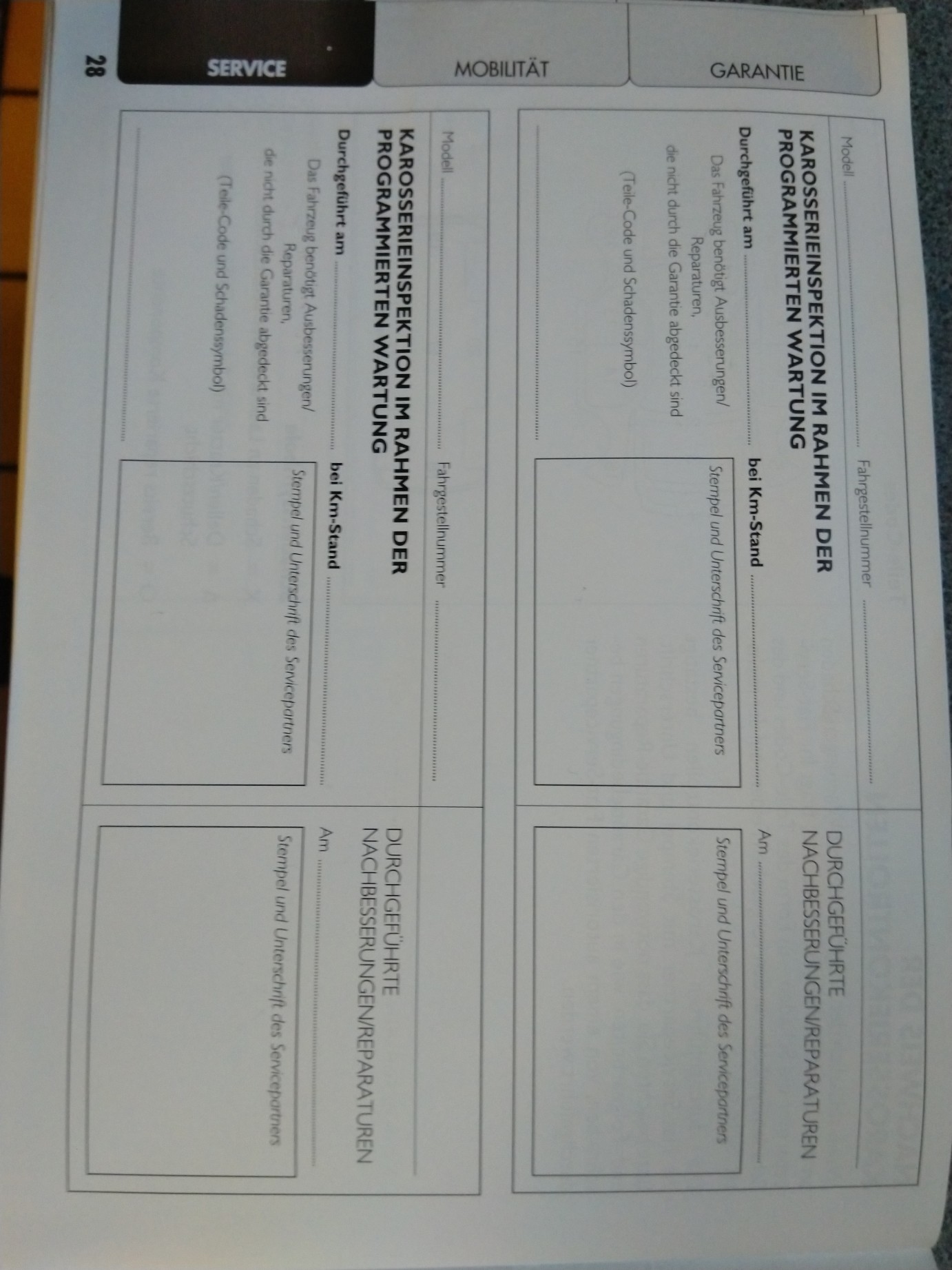 Kann mir vielleicht jemand die ersten Seiten fotografieren, dass ich was hab wo die Werkstatt den Stempel machen kann xD