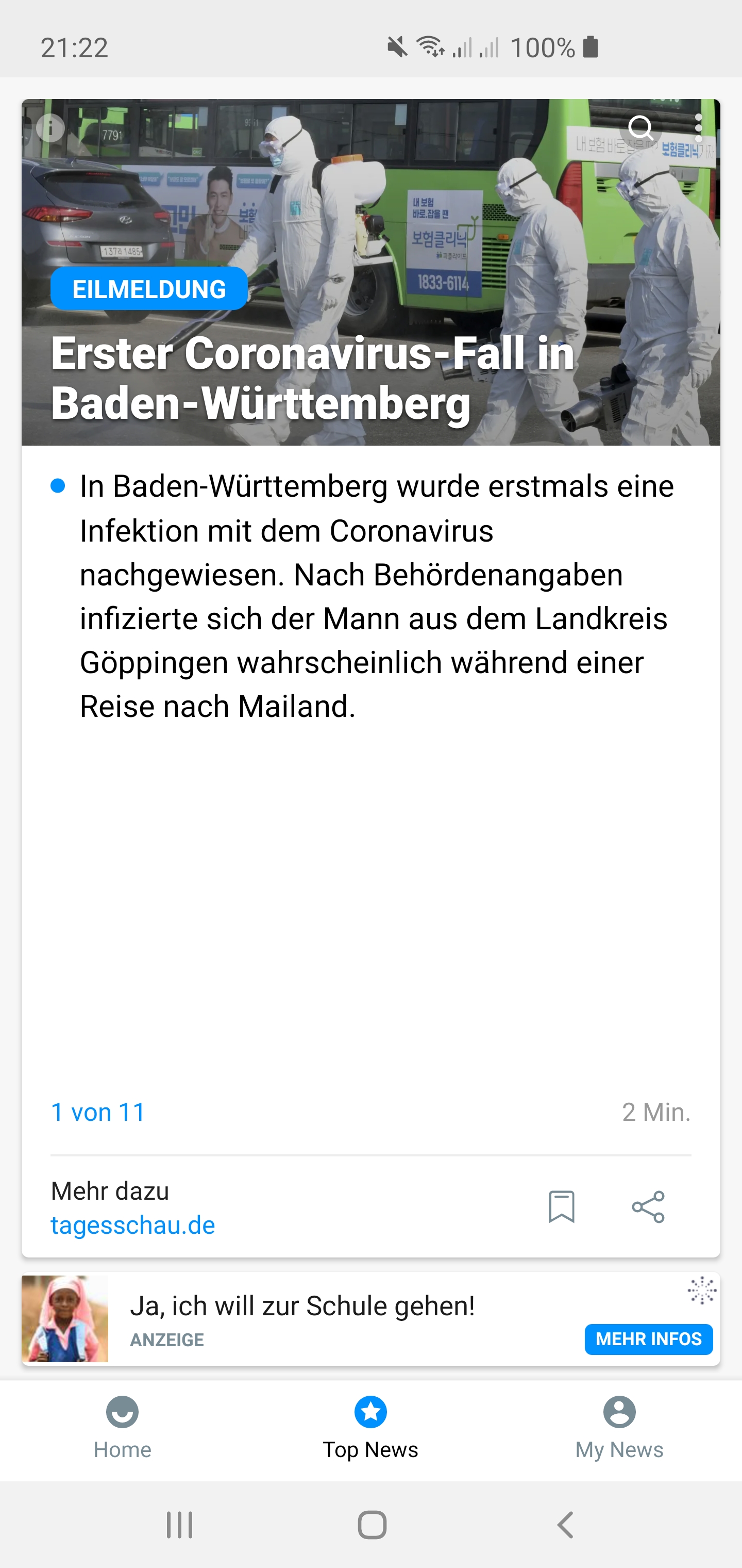 Baden-Württemberg hat seinen ersten Coronavirus-Fall: Nach Angaben der Landesregierung wurde am Abend eine Infektion bei einem 25- Jahre alten Mann aus dem Landkreis Göppingen nachgewiesen. Vermutet wird, dass sich sich der Mann während einer Italienreise in Mailand angesteckt hat.