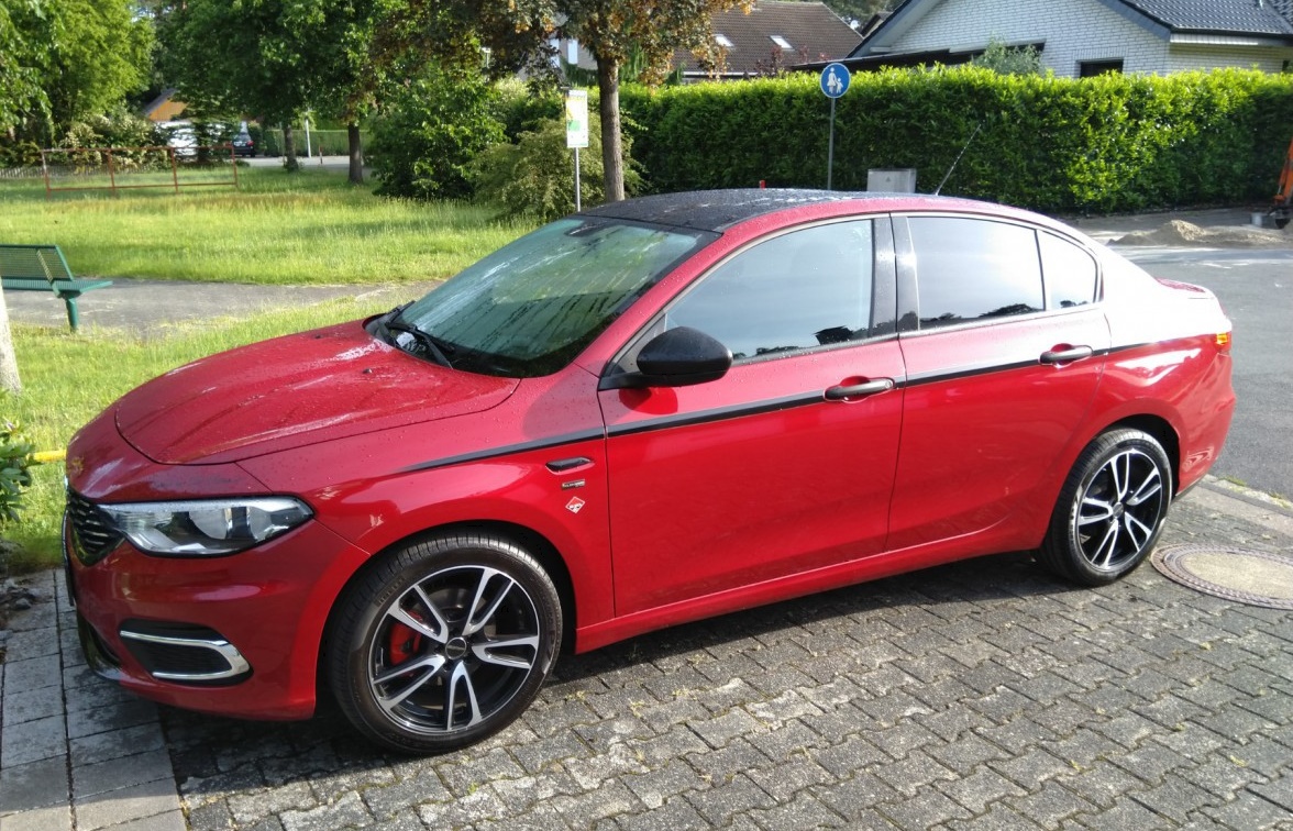 Aber in Absprache mit Elke gefällt uns die Folierung am Besten...Das "mahatma-rot" gefiel mir ja von Anfang an, wurde fast unser 2. Tipo als HB neben der Limousine. Das Uni-Rot gab es damals noch nicht, finde ich persönlich auch schön - passt aber am besten zur Limousine.