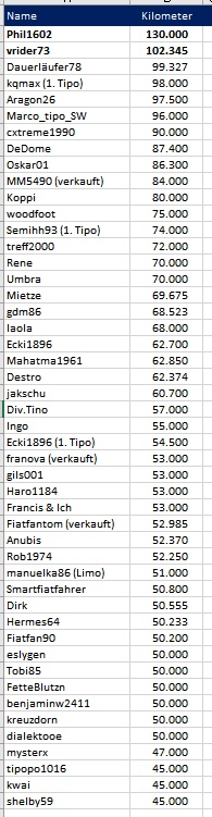• Ich habe nun bald in 6 Monaten 20.000km mit dem Tipo gefahren, habe ihn mit 23.000km übernommen, nun hat er halt knapp das doppelte drauf nach kurzer Zeit.