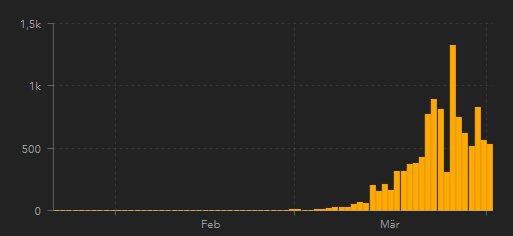Die Schwankungen sind ja schon immens. Dass die Neuinfizierten in Italien immer noch so krass steigen, trotz der ganzen Einschränkungen, ist ja schon bemerkenswert und erstaunlich. Und gestern dachte ich noch, dass es jetzt so langsam abflacht.
