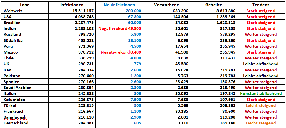 • Eben gerade in den Nachrichten: Das RKI zeigt sich besorgt über den Anstieg der Corona-Infizierten in Deutschland, die in der Hauptsache auf Urlaubsrückkehrer zurückzuführen sind. Spitzenreiter ist einmal mehr NRW.