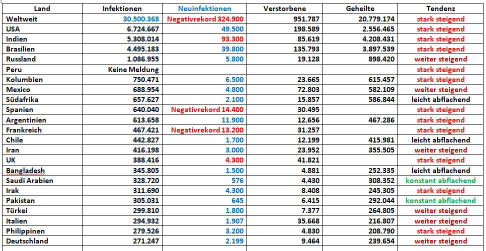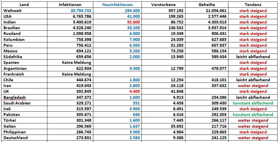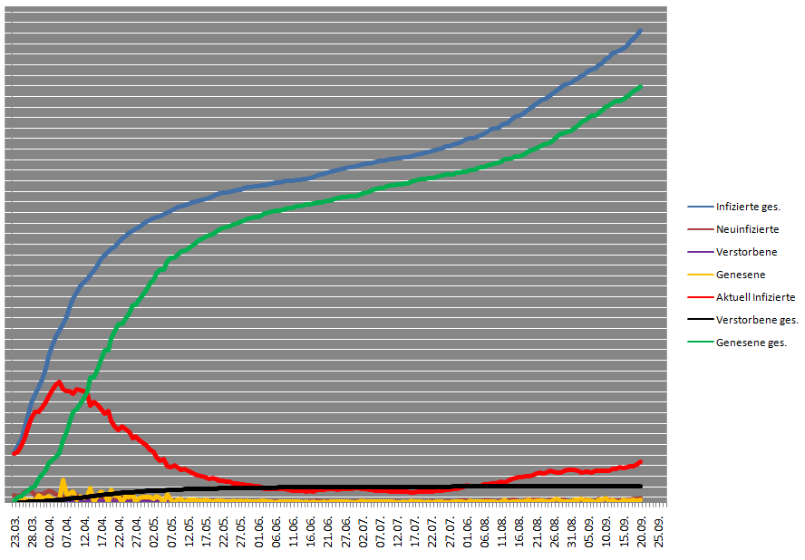 Das RKI meldet für Deutschland in den letzten 24 Stunden 2300 Neuinfizierte, Tendenz steigend.