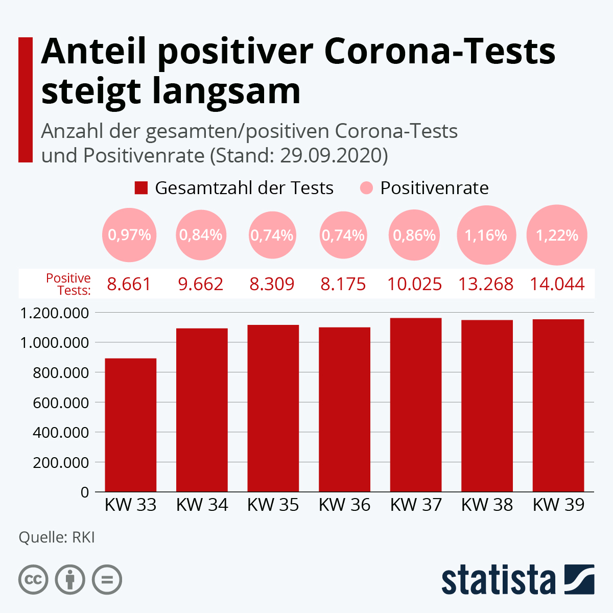 350.000 Tests wöchentlich im Juli, davon 1.500 -2.000 Tests wöchentlich positiv.