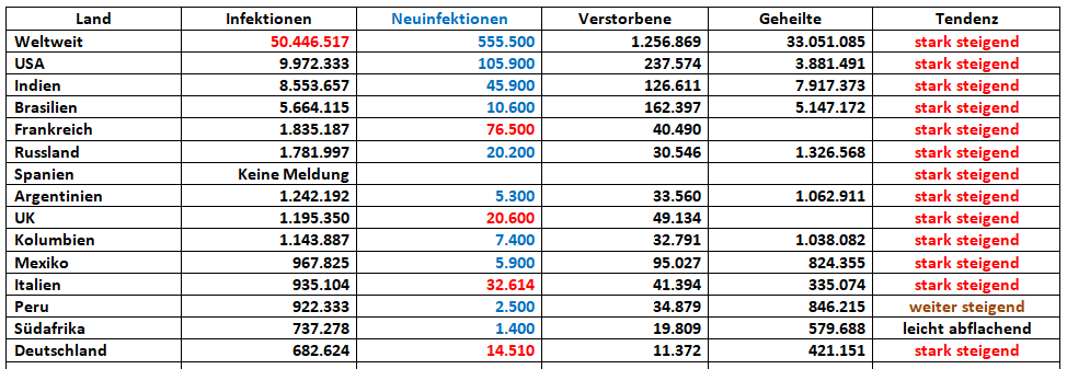 COVID 19 09.11.20 aktuell auf ITS 3005 invasiv beatmet 1688 Neu auf ITS 404 abgeschl. Behandlung 303 verstorben 88 -