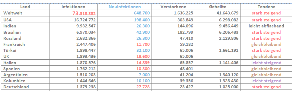 Das sind die Labor-Zahlen aus der letzten Woche, KW 50!