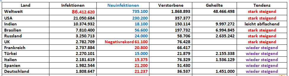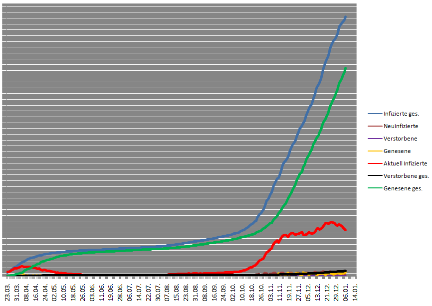Laut n-tv hat das RKI erneut verlauten lassen, dass aufgrund der Feiertage mit verlässlichen Zahlen erst ab dem 17. Januar zu rechnen ist. Das sind dann noch eineinhalb Wochen.