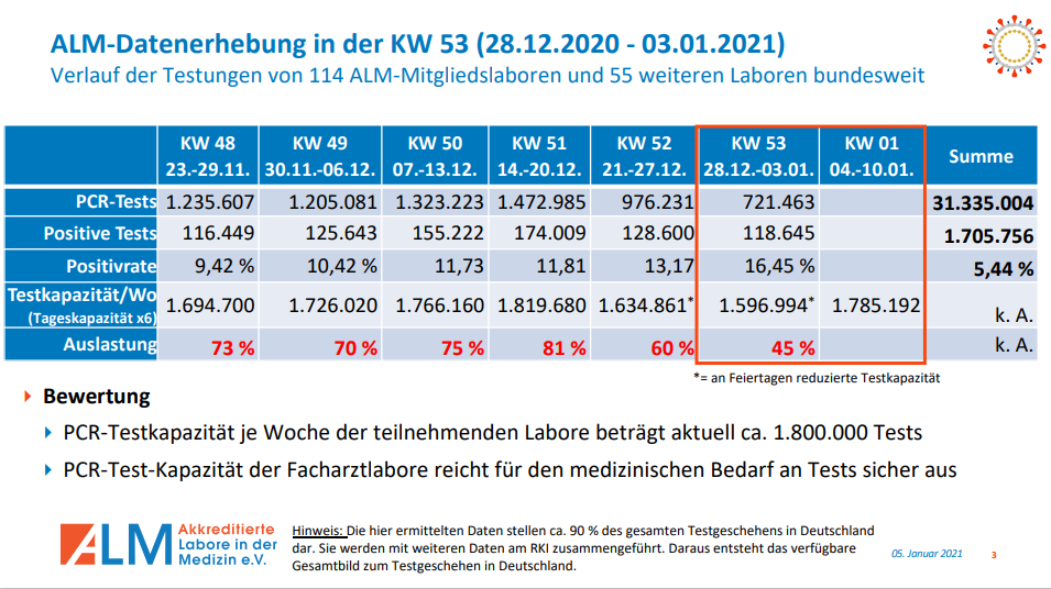 Aber wenn man sich die Daten der Testungen anschaut, in der KW53 wurde noch weniger getestet (-50% kw51),