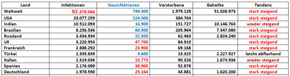 Vom 1.1. bis zum 13.1.2021 sind weitere 10 Millionen dazugekommen; daher geht für das Virus jetzt im Winter richtig die Post ab.