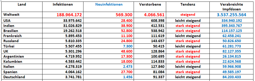 zahlen steigen auch in Italien,intensivbetten Belegung ist aber rückläufig, die Delta-Variante scheint nicht so schlimme Verläufe