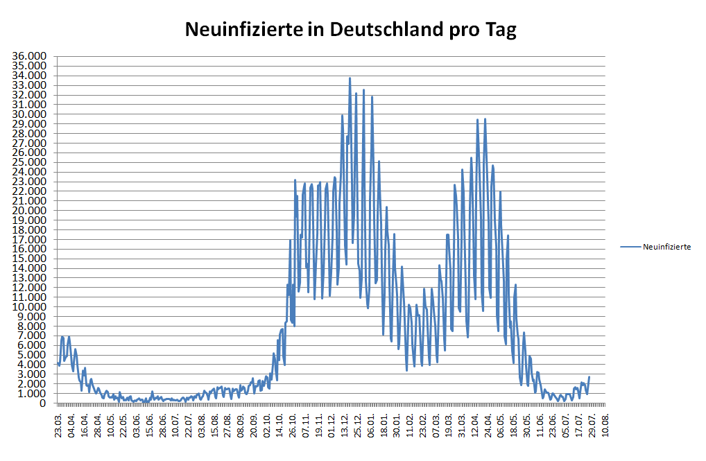 In der Urlaubszeit wächst der Anteil der Corona-Infektionen, die deutsche Urlauber vermutlich aus dem Ausland mit nach Hause bringen. Das RKI meldete 3662 Fälle. Meist waren die Reisenden in Spanien oder der Türkei.