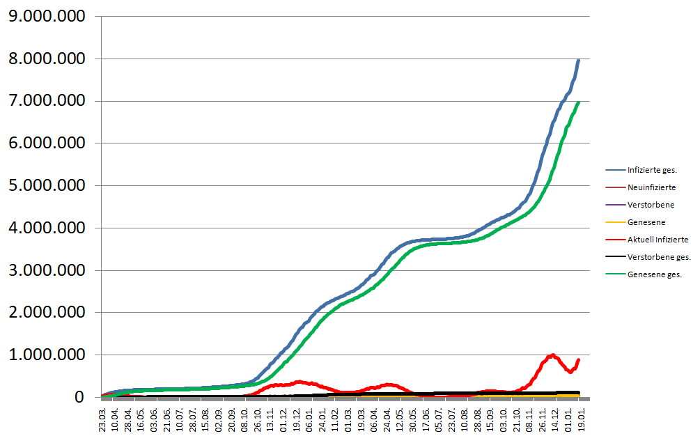 Aktuell stecken 100 Infizierte 121 weiter Menschen an!Das riecht eher nach aufsteigender Flanke!