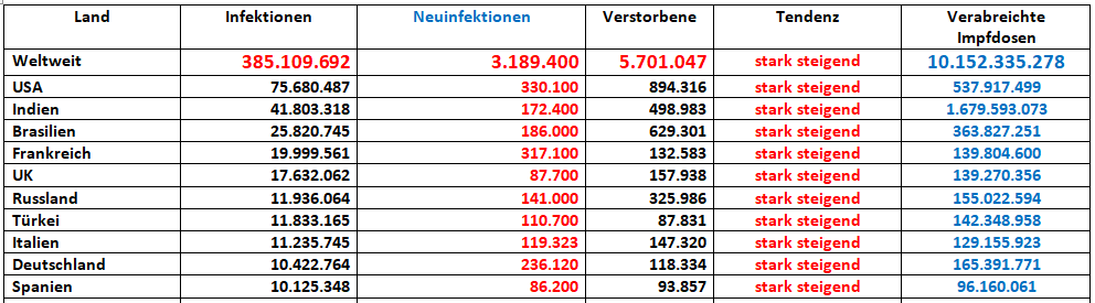 Donnerstagszahlen aus der Heimat -
