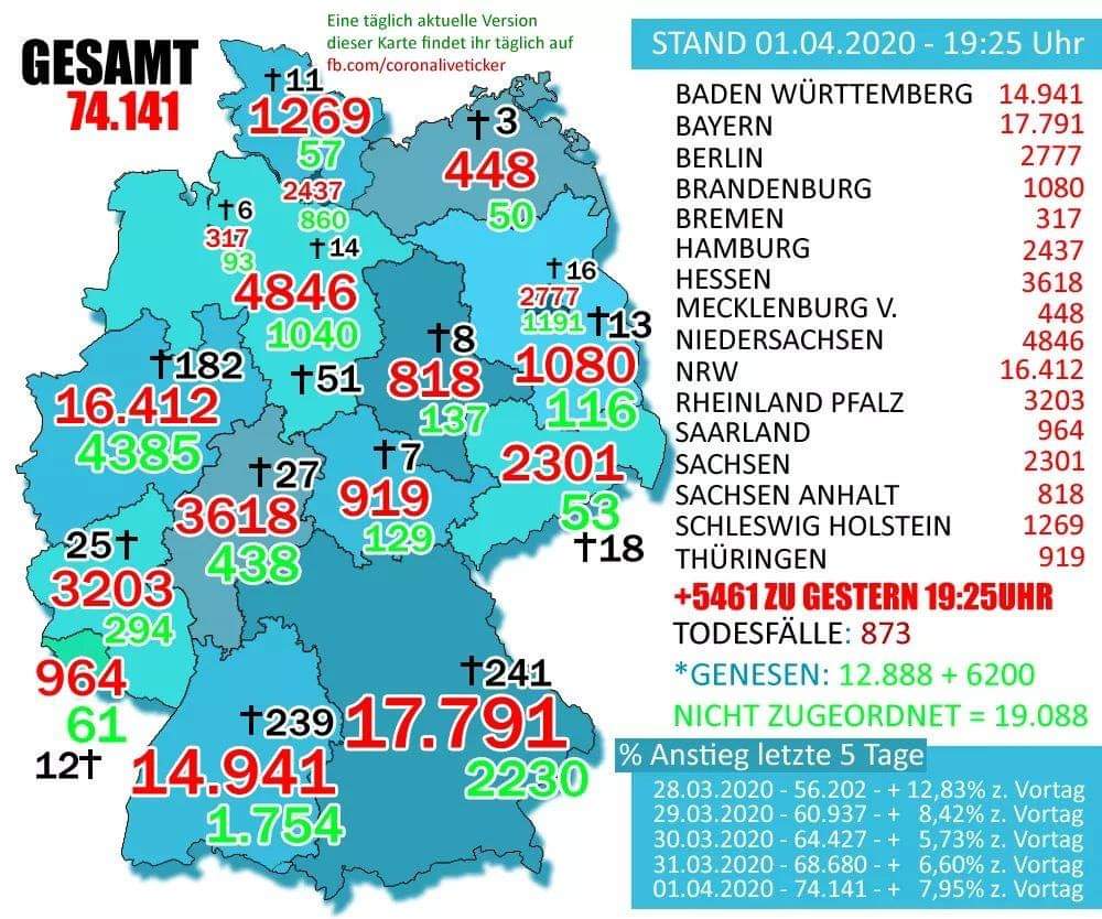 Deutschland 6.100 Neuinfizierte, wieder ein Anstieg (1.200) gegenüber den Vortag!
