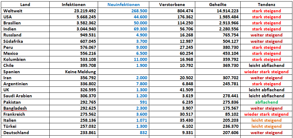 Alleine heute über 2000 neue Infektionen..... und dann die Testdebakel. Gestern ist ein Flieger auf der Startbahn umgedreht in Frankfurt weil eine Frau per Mail ihr positives Ergebnis bekam. War in Kroatien.....no Comment