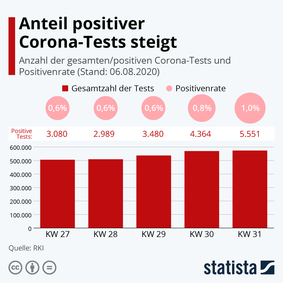 350.000 Tests wöchentlich im Juli, davon 1.500 -2.000 Tests wöchentlich positiv.