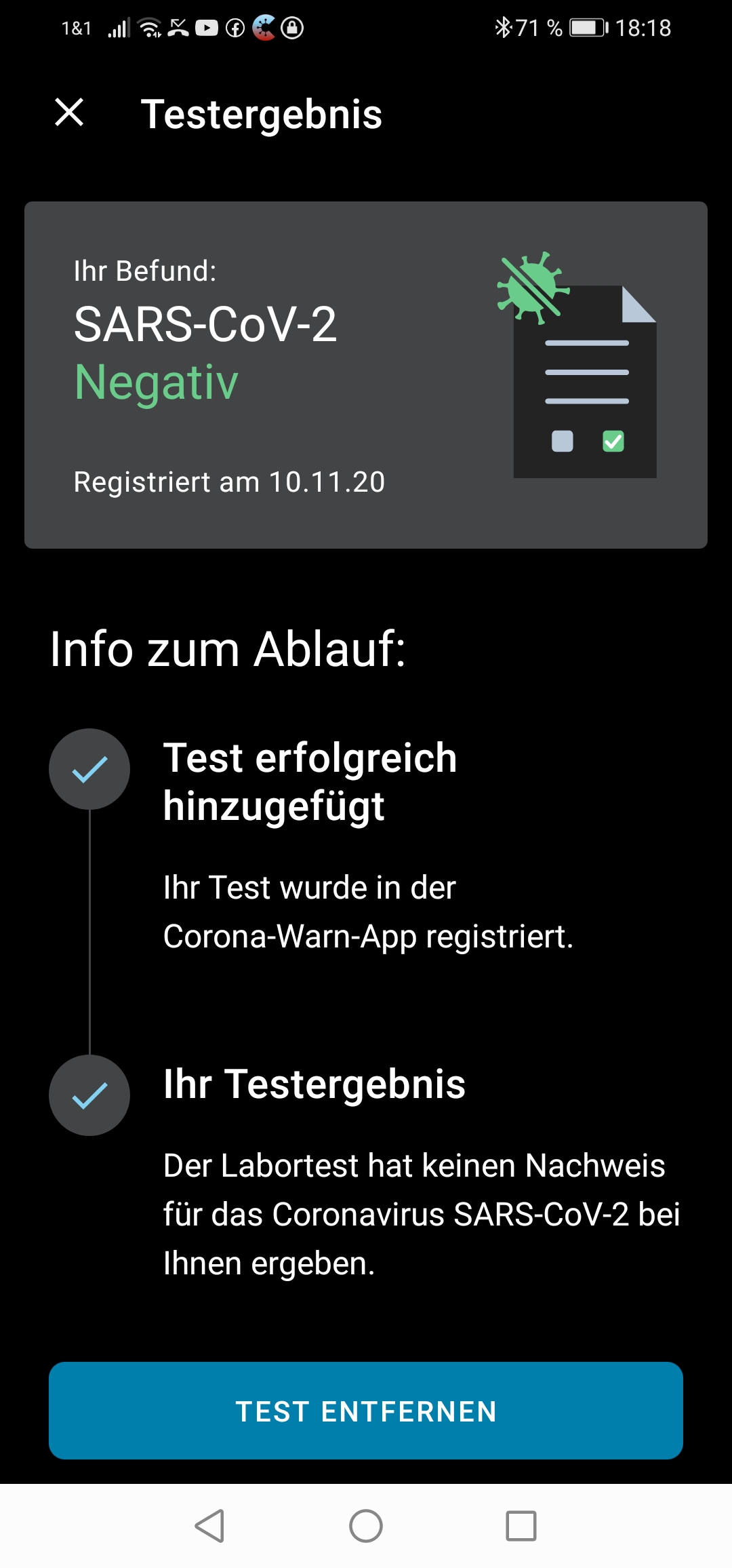 Ja, aber die App kann halt kein Ergebnis anzeigen wenn noch kein Ergebnis vom Labor bekannt ist. Ich weiß nicht, warum hier die Labore 1-2 Wochen brauchen.