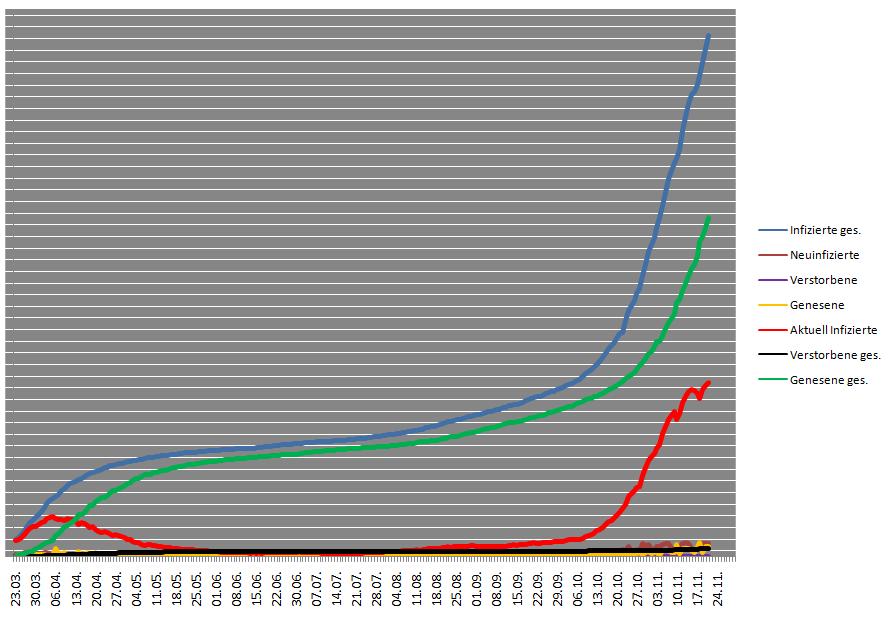 COVID 19 16.11.20 17.11.20 18.11.20 19.11.20 20.11.20 aktuell auf ITS 3436 3517 3561 3588 3615 invasiv beatmet 1971 2010 2024 2084 2103 Neu auf ITS 484 513 450 462 468 abgeschl. Behandlung 433 432 406 435 441 verstorben 113 108 52 109 101 -