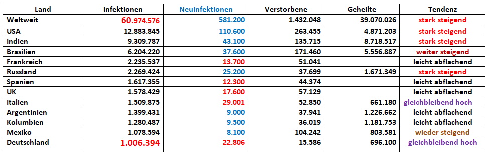 Über 1.000.000 Infizierte in Deutschland!