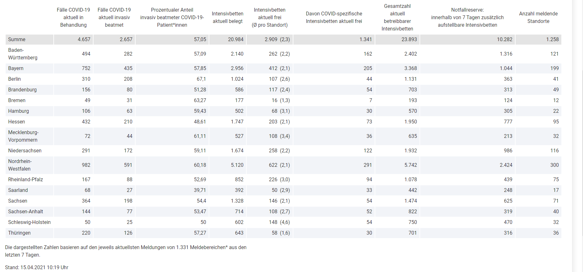 Werte wären nicht wichtig, die Belegung der Intensivbetten