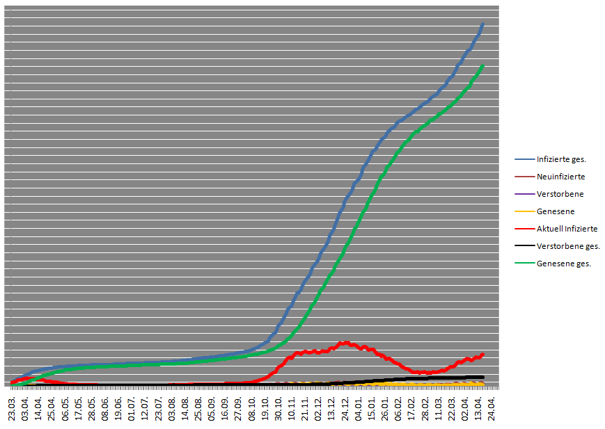 Heute hab ich mal wieder Nachrichten im Autoradio gehört. Innerhalb einer Minute diese 2 Meldungen: Die Inzidenzzahlen steigen bundesweit erschreckend. Unser Wirtschaftshupsi findet die Ausgangssperre kontraproduktiv und die Restaurant und Ladenschließungen sowieso.