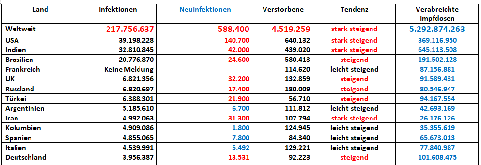 Die Inzidenz geht so langsam wieder durch die Decke spielt jedoch so kurz vor der Wahl jetzt zum Glück keine Rolle mehr.