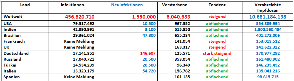 Die zunehmende Sorglosigkeit ist erschreckend. Bei den von Gerd genannten Zahlen wären vor einem Jahr noch stündlich Sondersendungen im Fernsehen gelaufen.