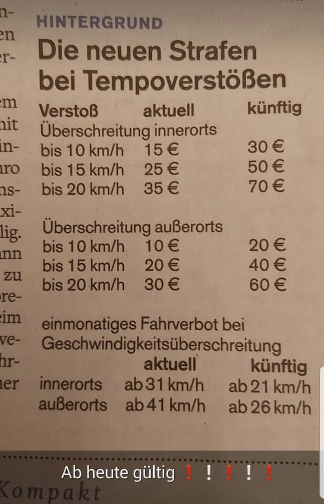 Für den ein oder anderen sicher interessant, es gelten bald neue Strafen bei Geschwindigkeitsverstößen.