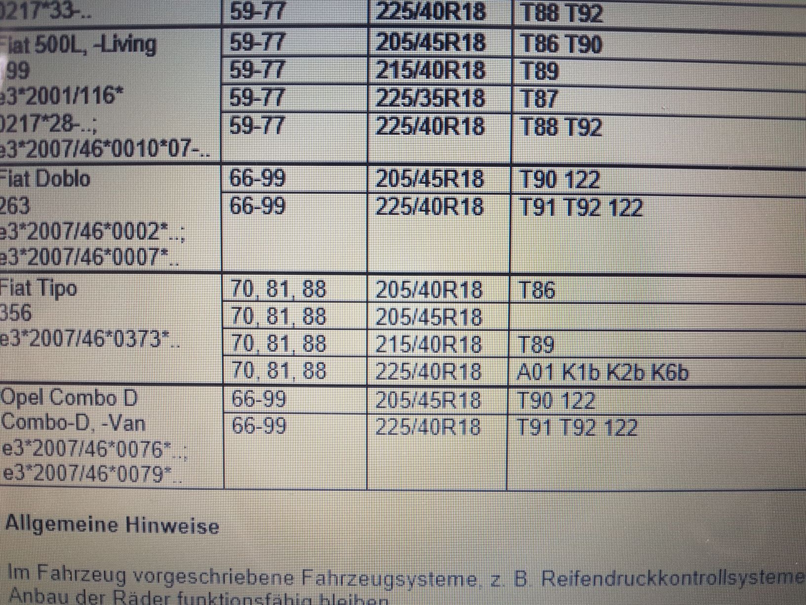 K1a , K2b und K6b sind Auflagen laut Gutachten. (bei 225/40R18)