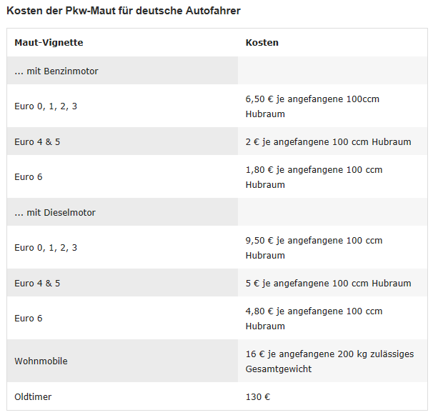 Pkw-Maut – Infrastrukturabgabe 2017