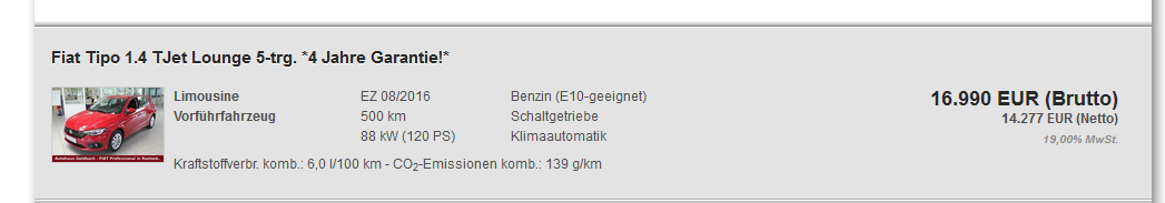 Häh! Günstig!! Kofferraum abgehackt? Ist doch ne Limo mit 520 Liter Kofferraumvolumen und dann 17.000 Euronen. Gut, 120 PS, aber trotzdem..... Mein Neffe würde sagen "Ein absolutes No-Go!".