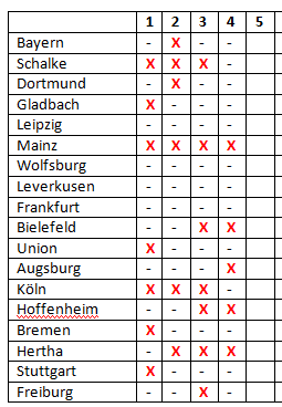 Welche Mannschaften verliert als erste Mannschaft 5 Spiele in Folge? 15