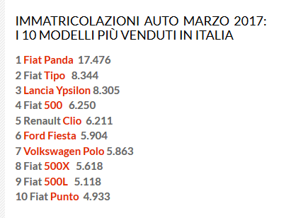 In Deutschland sowieso nicht, aber in Italien ist das zweit meist verkaufte Auto, nach den Panda (8344 in März)