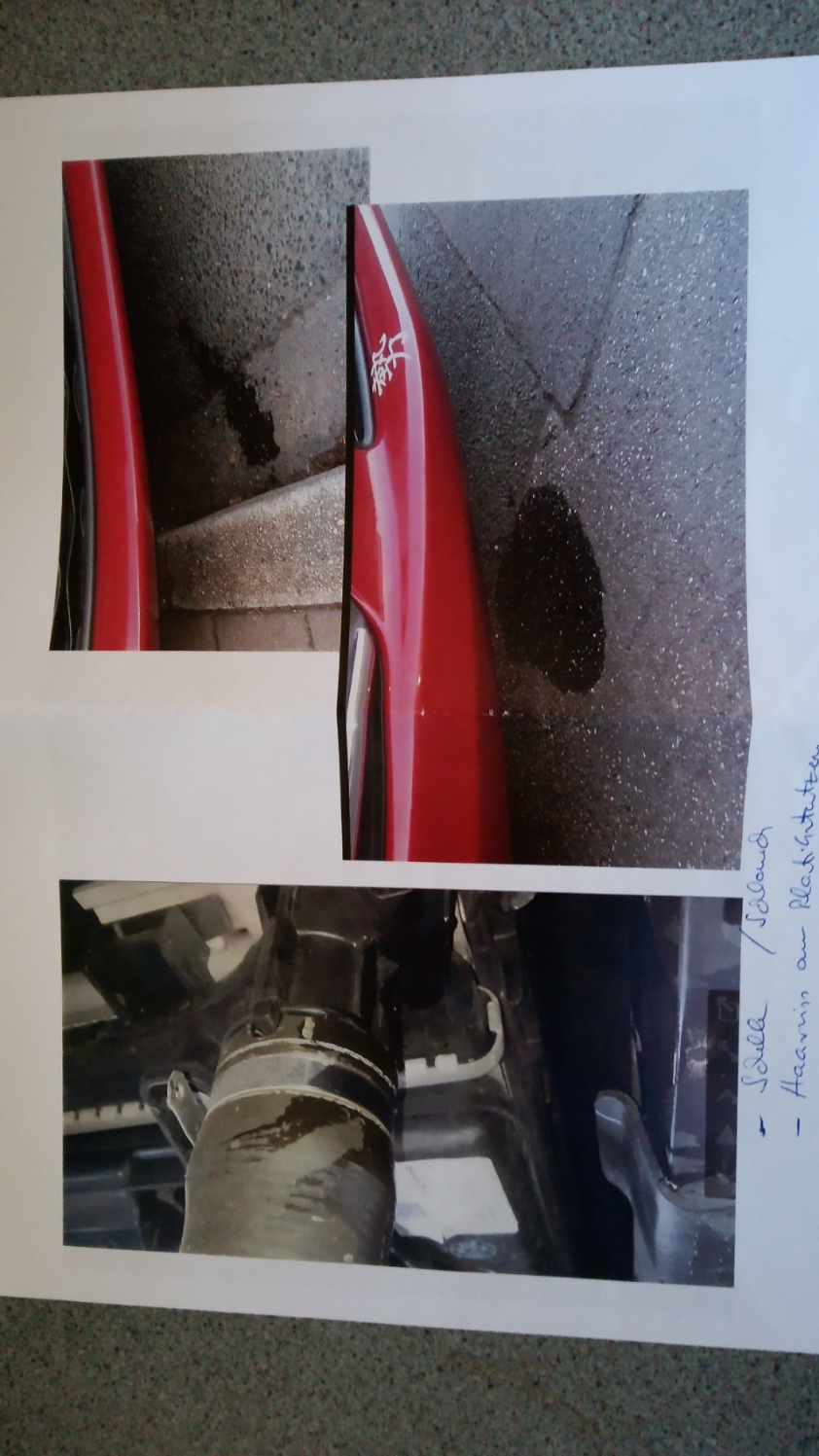 heute morgen entdeckte ich nach dem Wiederkommen auf den Steinen der Einfahrt einen feuchten Fleck 6x 8 cm, der nur vom Wagen über Nacht stammen konnte. Kein reines Wasser. Minimal ölig. Riecht nicht.