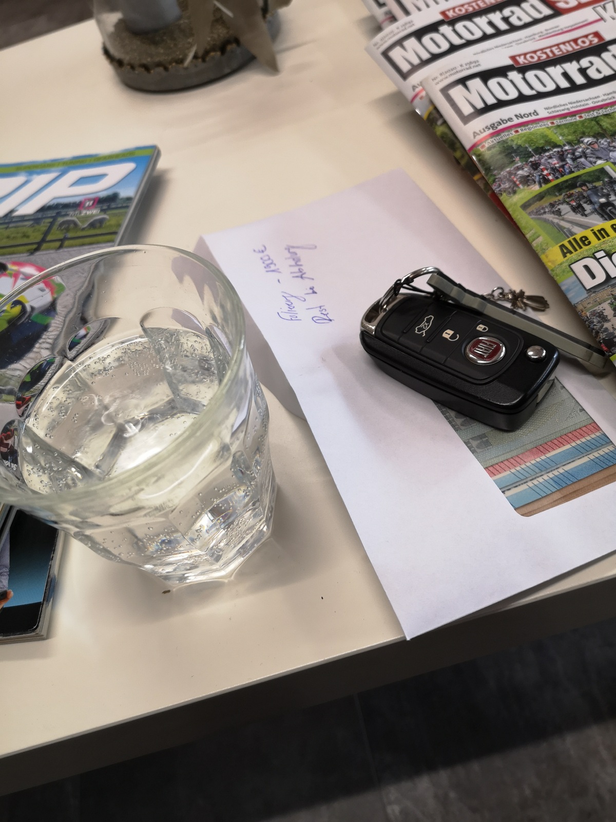 Durch das Fenster im Umschlag schimmern Geldscheine. Zahlst Du etwa im voraus??? -
