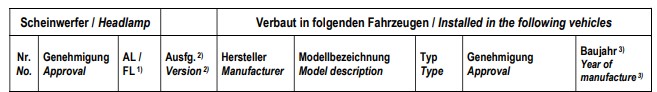 Scheinwerfer und Fahrzeug. Beides muss übereinstimmen.Es müssen alle Daten übereinstimmen. Also die E Nummer auf den Scheinwerfern, die E Nummer vom Fahrzeug, die Typnummer vom Fahrzeug und das Baujahr.