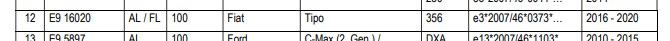 In der Zulassungsbescheinigung Teil I steht der Typ unter D.2 356 und die Genehmigung steht unter K e3*2007/46*0373*.. -