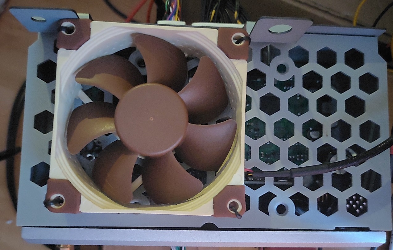 Und so mit 3D Druck Deckel und 80er Lüfter (nicht zu hören bei 12V)