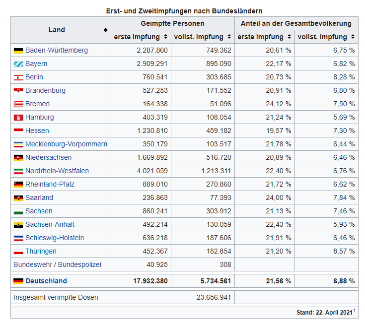 Hier sieht man noch alle Statistiken zur Coronaimpfung aber getrennt für die verschiedenen Läns (Verwaltungsgebiete)