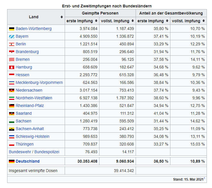 Hier wurden jetzt auch erst mal die Erstimpfungen drastisch zurückgefahren, damit genug "Stöffche" da ist für die Zweitimpfungen. Ich hoffe daher, dass die Kameraden nächste Woche meine Zweitration vorrätig haben.