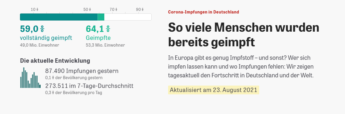 „....Letztlich gibt es nämlich nur die Wahl zwischen einer Impfung und einer Infektion mit SARS-CoV-2. Auf die ein oder andere Art werden wir früher oder später immun sein – vorausgesetzt das Virus mutiert nicht schneller als wir unseren Immunschutz aufbauen können. Die deutlich sicherere Variante für die Immunisierung ist deshalb die Impfung. Nicht nur, weil sie uns vor der Krankheit schützt, sondern auch weil sie dem Virus weniger Möglichkeit zur Mutation lässt.„