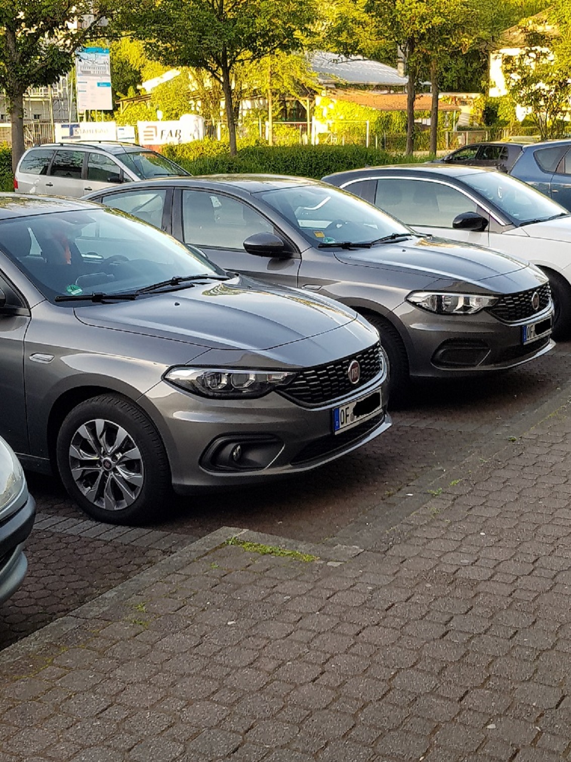 Ja, schon komisch. Hier bei der FCA Niederlaassung, wie wir unseren Tipo holen.