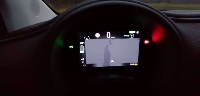 Nach gefahrenen 217 Km mit gesamtem Wohlfühlprogramm zeigte die Reichweitenanzeige noch 43 Km Restreichweite an.