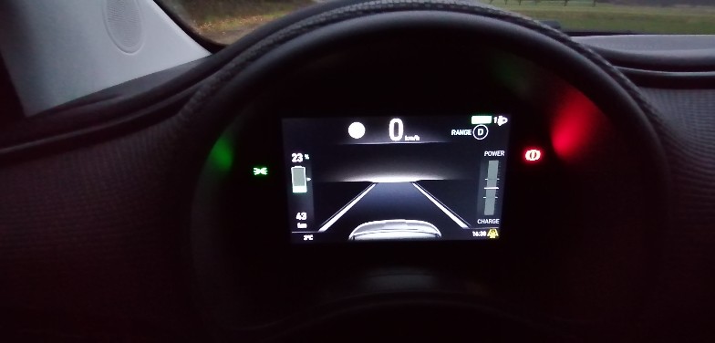 Jetzt im Winter hat man natürlich die Klimaautomatik welche super funktioniert auf schön mollige 23 Grad eingestellt und hat die Hinternwärmer an das Licht schaltet sich ein usw. In diesem Zustand bin ich mit einer errechneten Reichweite von 245 Km gestartet.