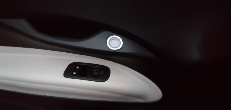 Der erste Aha Moment war das Wägelchen zu öffnen. Es gibt keine mechanischen Türgriffe wie wir sie kennen sondern die Türgriffe sind elektrisch kombiniert mit Keyless Entry und Go. Ebenso gibt es im Inneren nur zwei hübsche Tasten an der Tür um diese zu öffnen.