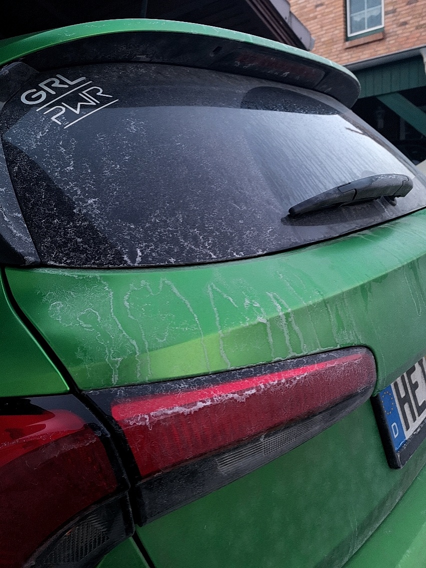 Tja, da scheint wohl der Fahrzeugwäscher in Kurzarbeit zu sein.
