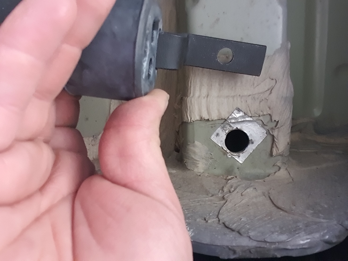 Nun muss man auf der Beifahrer Seite den mitgelieferten Auspuffhalter montieren.