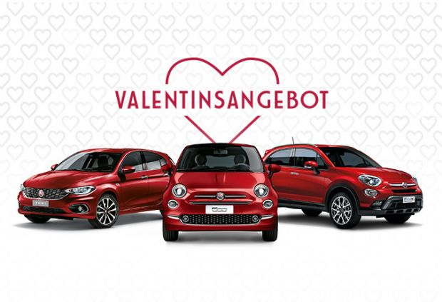 Am 14. Februar ist Valentinstag. Der perfekte Anlass für Fiat, symbolisch die Farbe der Liebe und Leidenschaft zu verschenken. Oder wie es in der Farbpalette von Fiat mit italienischem Einschlag heißt: Amore Rot und Passione Rot. Wer bis zum 15. Februar 2017 ein ausgewähltes Modell der Baureihen Fiat 500, 500L, 500X, Tipo Limousine, 5-Türer oder Kombi, Panda, Punto, Qubo oder Doblò bei einem teilnehmenden Fiat Partner kauft, erhält die Sonderlackierungen Amore Rot oder Passione Rot ohne Aufpreis. Privatkunden sparen so je nach Modell bis zu 550 Euro. Das Special zum Valentinstag ist mit anderen attraktiven Angeboten von Fiat kombinierbar. Nähere Informationen im Internet unter https://www.fiat.de/angebote/n…kaufen.fiat-wochenangebot.